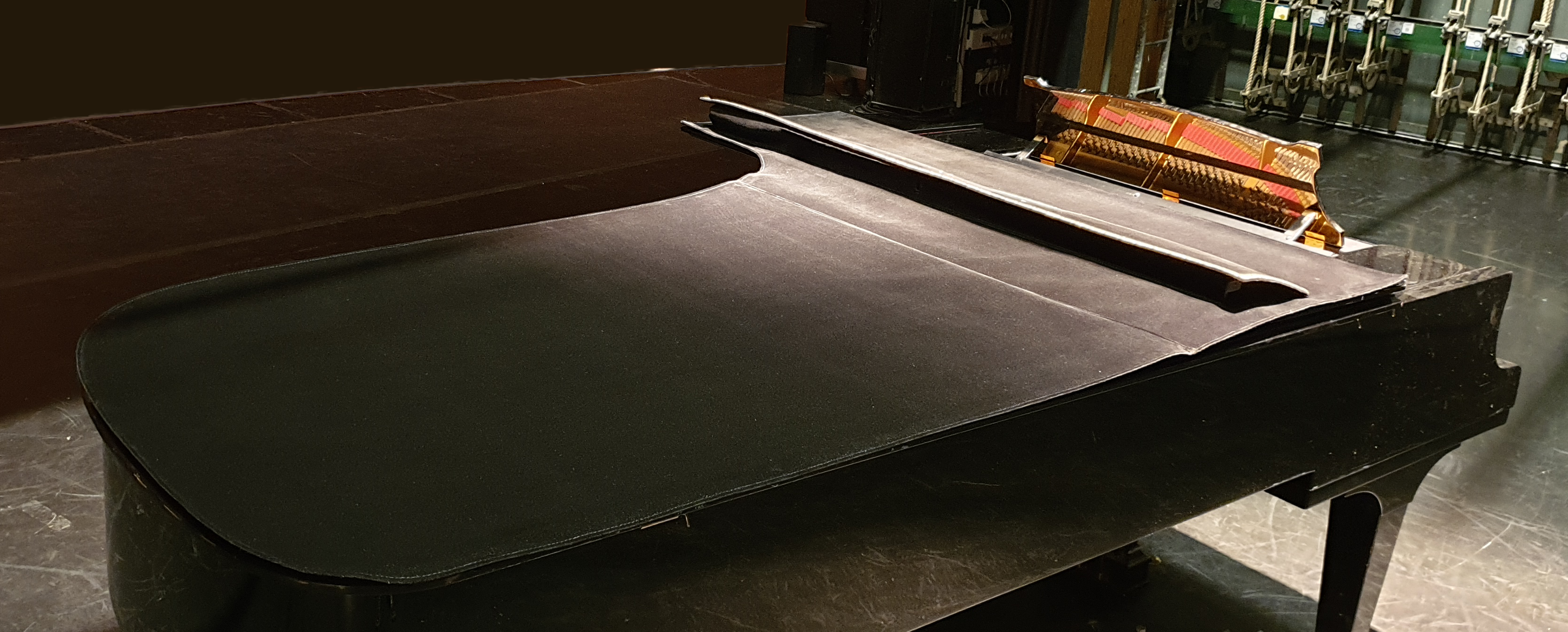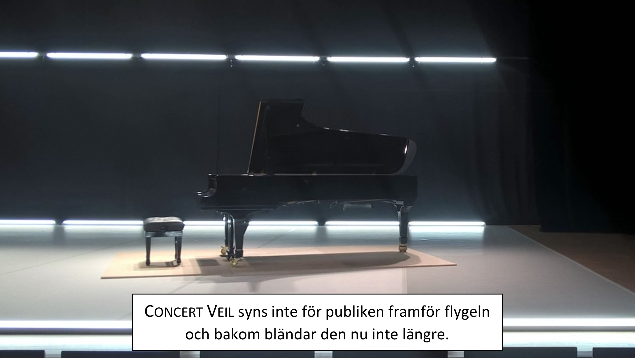 När konsertscenen är belyst med strålkastare är risken stor att besvärande ljusreflexer uppkommer via blanka föremål på scen. Den fina konsertflygeln med sitt stora högblanka lock är ett sådant föremål som kan orsaka besvärande ljusblänk för omkringvarande på scen.